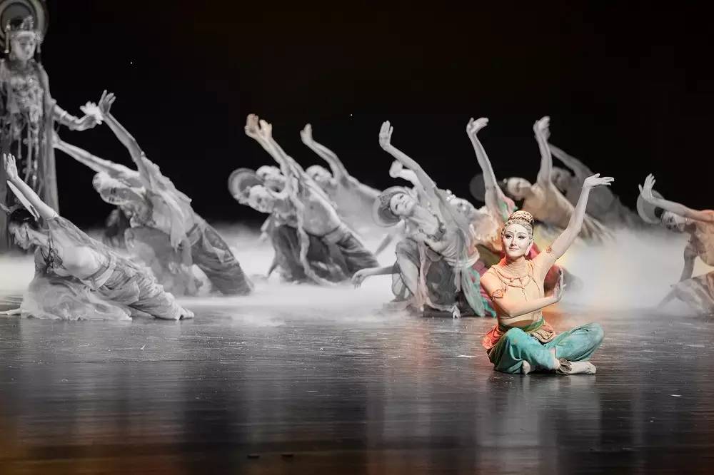 舞剧《莲花》将背景置于敦煌莫高窟中,讲述了一位敦煌彩塑师“乐僔”,感知到“莲花”的真善美好,用尽毕生心血, 潜心浇铸最终创作出一尊莲花彩塑并置于敦煌石窟中。整个作品中可以看到大量借鉴敦煌壁画而创作的片段,色彩浓郁,极具风格。