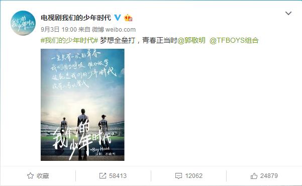 《我们的少年时代》是TFBOYS组合王俊凯、王源、易烊千玺首次合体主演的第一部电视剧作品。消息一出,已经得到了众多粉丝的积极响应。