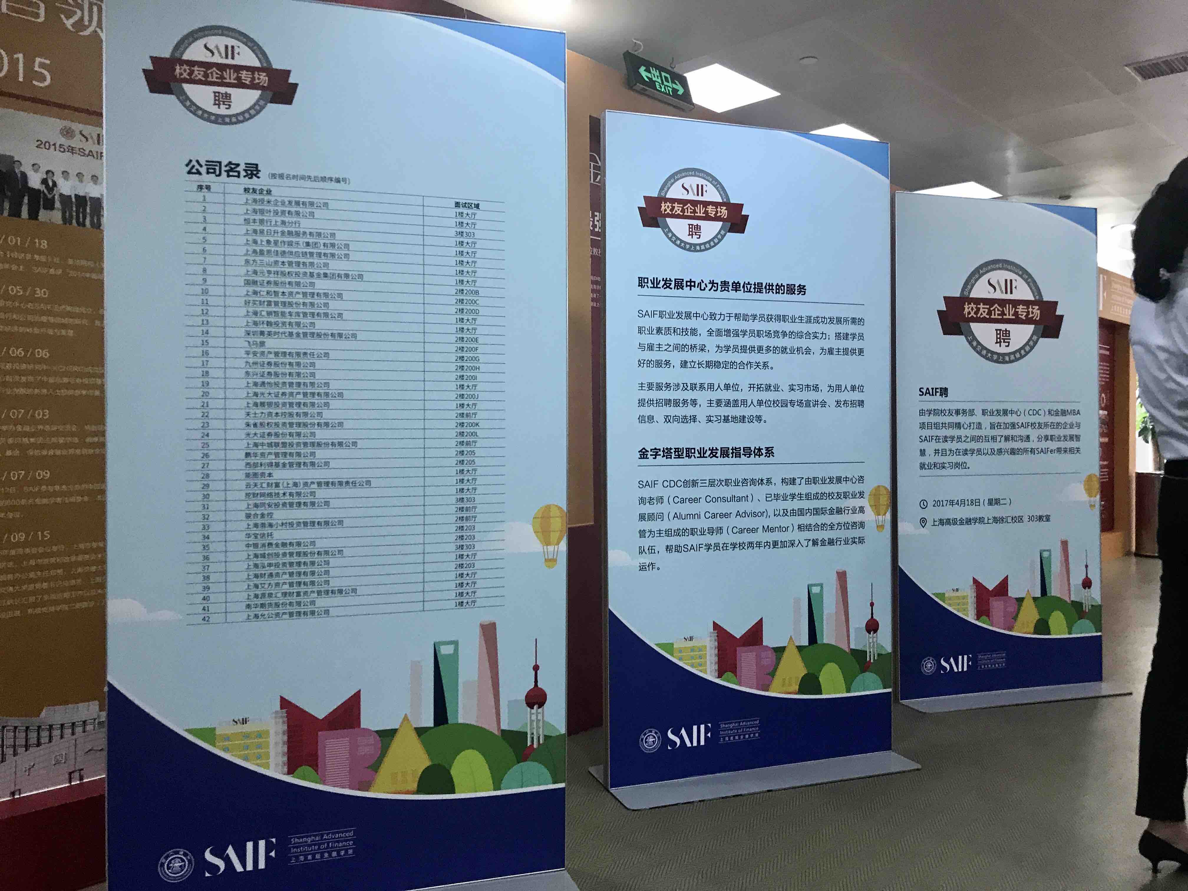 此次“SAIF聘”活动由上海高级金融学院校友事务部、职业发展中心和EMBA项目共同打造,在学院八周年院庆之际,面向2008级至今所有的EMBA学员、MF校友及校友企业开放,旨在为更多校友提供展示的平台,也为更多校友企业输送更多人才。