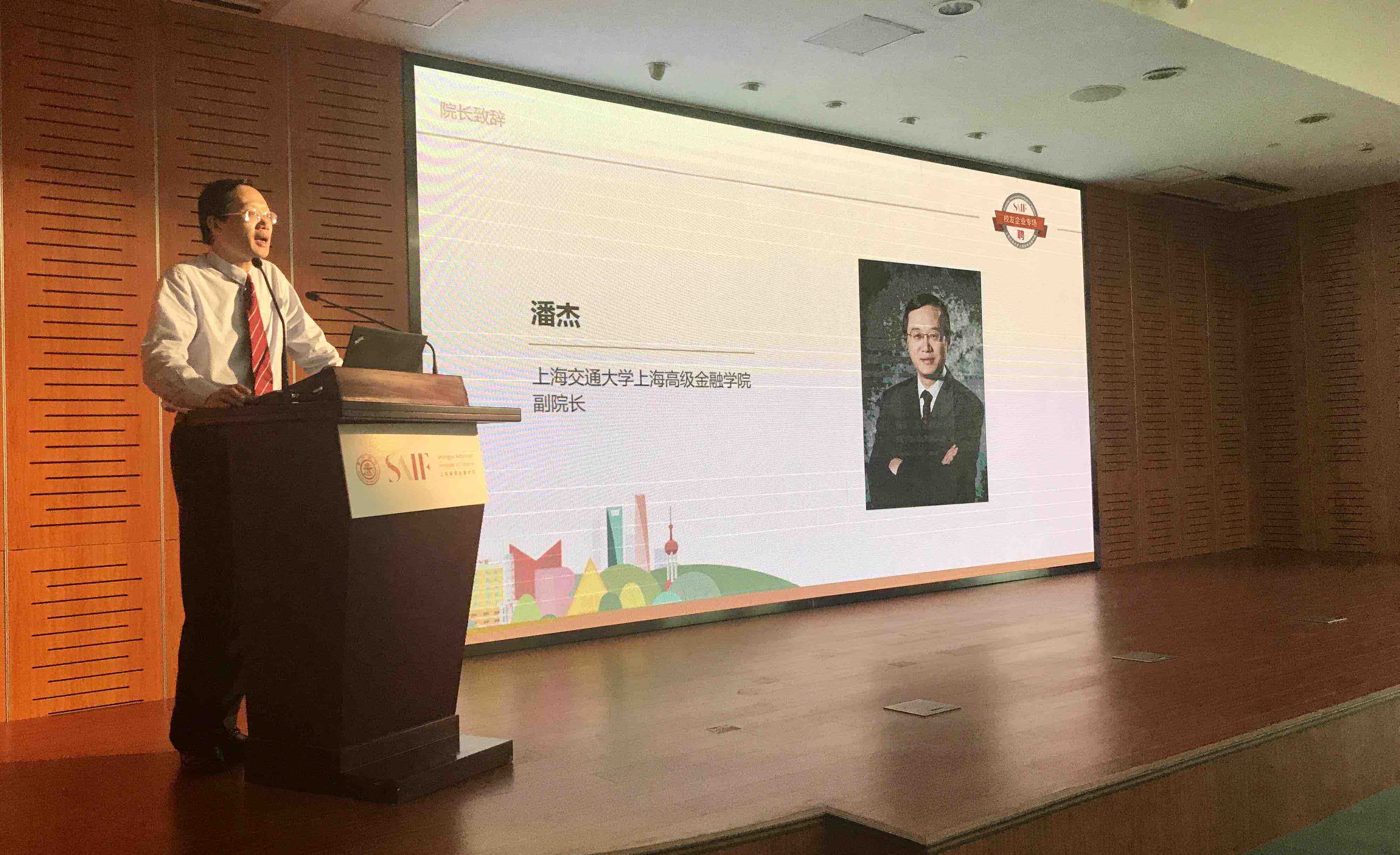 上海高级金融学院副院长潘杰在活动开场进行了简短的致辞,向在座的所有校友企业及校友们阐述了此次活动的意义。